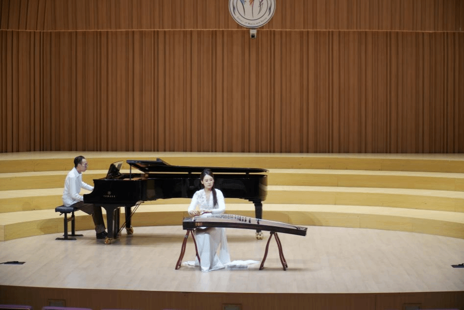 在华彩音乐厅,音乐舞蹈学院的师生们展示了中国的民族音乐。徐晶晶老师的竹笛演奏《牧民新歌》,悠扬欢快的笛声展现了新社会牧民的幸福生活;何静老师带来古筝协奏曲《枫桥夜泊》,婉转的曲调配合枫桥夜泊的独特诗意让人回味无穷。拥中布老师一首蒙古布里亚特民歌《等你归来》,让人仿佛置身辽阔的草原,洋溢着清新、浪漫的气息。音乐舞蹈学院6位同学的古筝重奏《开元盛世》,气势恢宏,盛世的雄浑气象与典雅风情倾泻而出。中国传统音乐的独特魅力和师生们的高超技艺令来访客人们惊叹不已。